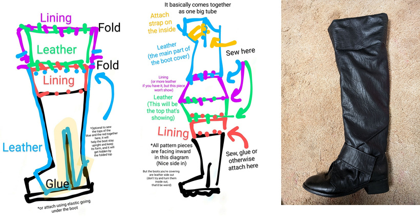 -The boot cover fabric (I used around 1.5 yards of black pleather)