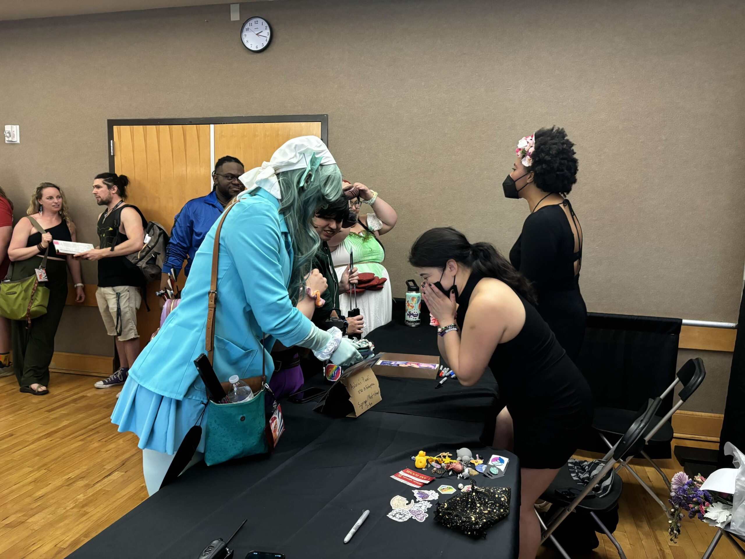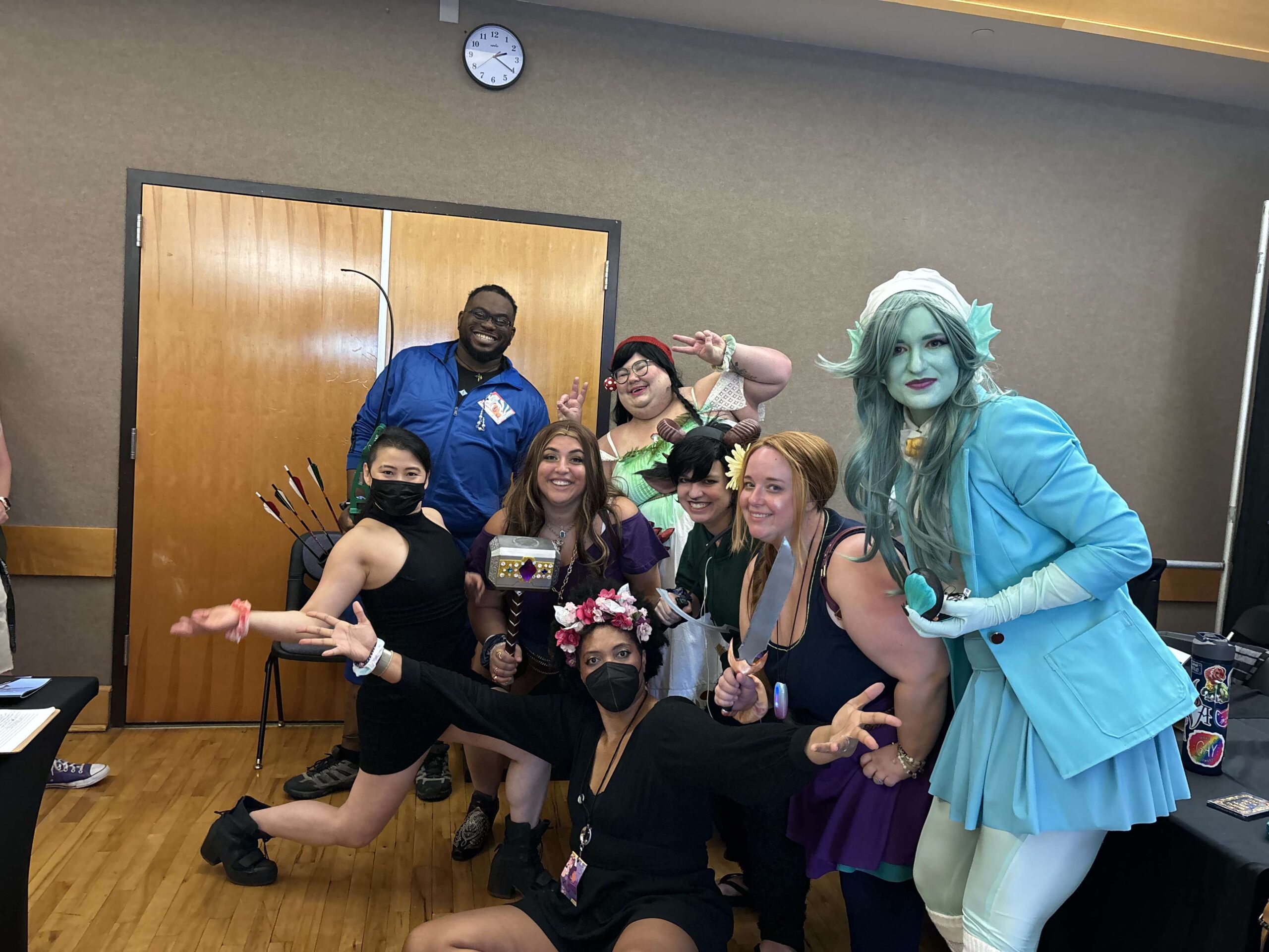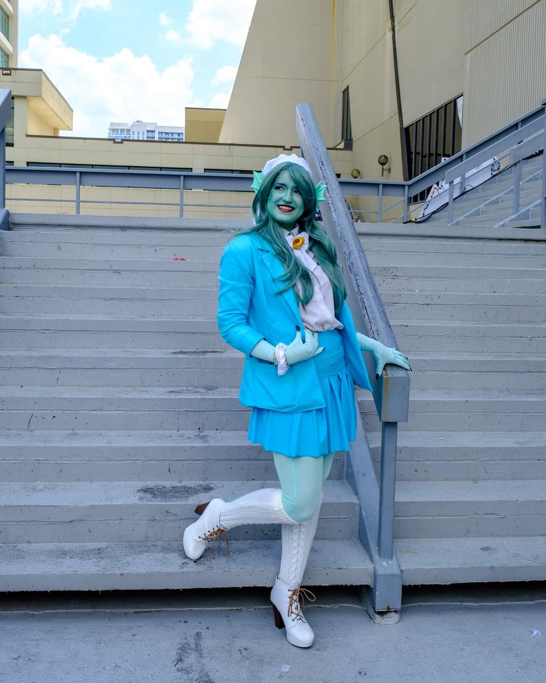 This Sam Nightingale cosplay was made in 2024 for Fort Collins Comic Con. The event was attended by a group all cosplaying from The Seven, which is a Dimension 20 season from Dropout TV. The cosplay is mostly made by Char Grey, with only the shirt being purchased. It has not been competed in.